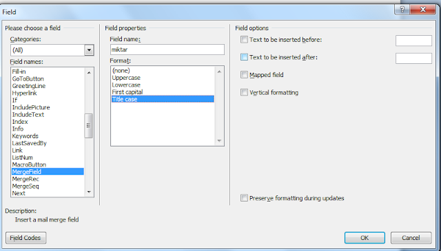 Mesela excel verilerinizde tüm isimlerin tüm harfleri büyük yazılmış olsun siz excel listede herhangi bir düzeltme yapmadan bu ekranda Format başlıklı listedeki “Title Case” seçeneğiniz seçerseniz verileriniz word belgesine yazılırken sadece baş harfleri büyük şekilde yazılacaktır. Ya da ilgili alanın başına veya sonuna otomatik bir değer eklenmesini istiyorsanız şablonda herhangi bir ekleme yapmadan bu ekran üzerinden “Text to be inserted after:” ile sonuna, “Text to be inserted before:” ile alanın başına istediğimiz değeri ekletebiliriz.