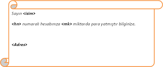 Bir word belgemizde aşağıdaki gibi bir şablon metnimiz var diyelim.